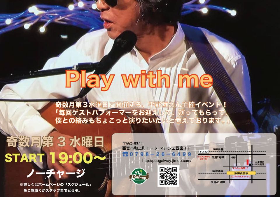 | 奇数月の第3水曜日、阪神西宮PubGalwayさんに毎回ゲストをお招きし、僕との絡みもありで、演ってもらいます。 今回のゲストはイエローリボンのクマゴローさん。僕も楽しみです。 勿論、僕の弾き語りもたっぷりと…。 マスター・ソムリエShoのおすすめドリンクと美味しいフードを楽しみながらどうぞ。 ノーチャージで、出入り自由なので、気軽にお越し下さい。 |